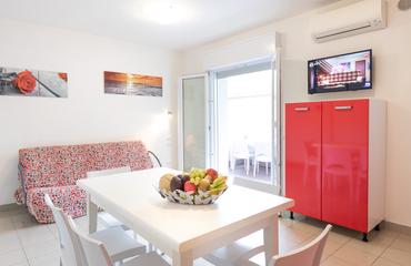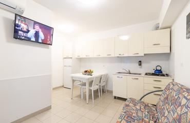 Das Haus ist sehr schön und es umfasst gesamt 6 oder 7 Apartments. Der Parkplatz befindet sich am Grundstück. Für uns war die Lage super. Zu Fuß ist alles gut erreichbar. Der Pam Supermarkt ist um die Ecke. Man kann also jederzeit mal schnell frisch einkaufen. Es war alles sauber und in der Küche soweit alles vorhanden was man braucht. Unser Apartment hatte 2 Balkone. Alle Fenster haben Rollläden.