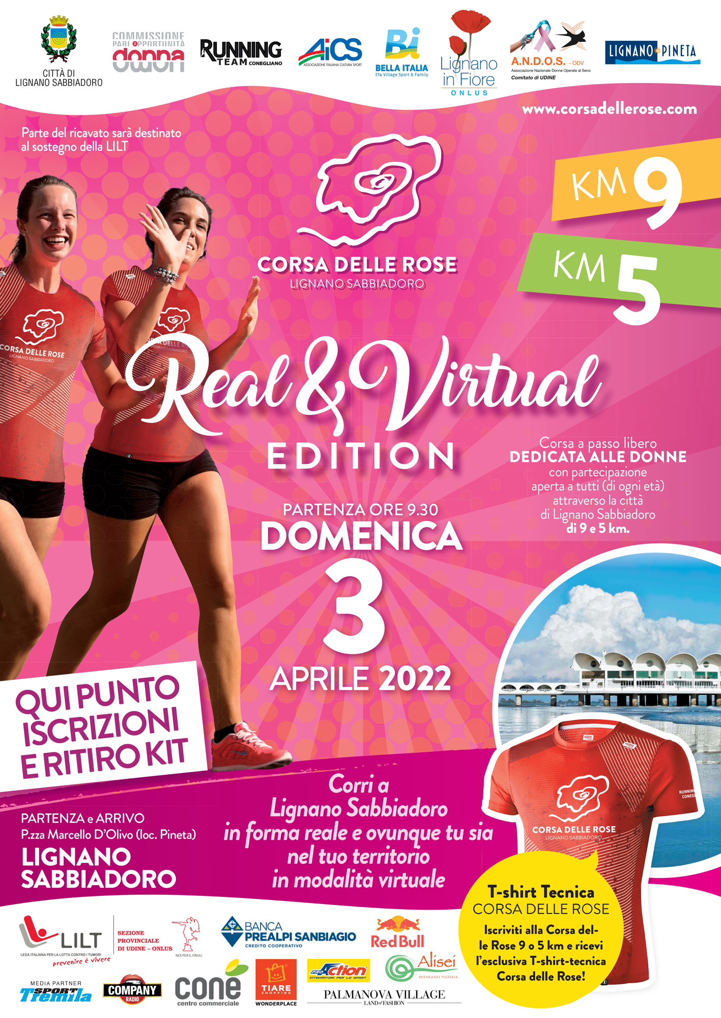 Il 3 aprile si svolge a Lignano Sabbiadoro la 3° edizione della Corsa delle Rose, una corsa dedicata alle donne, lungo le strade di Lignano Sabbiadoro, sulla distanza di 5 km e 9 km. La corsa si può svolgere anche virtualmente correndo nel proprio territorio e supportando l'iniziativa.
