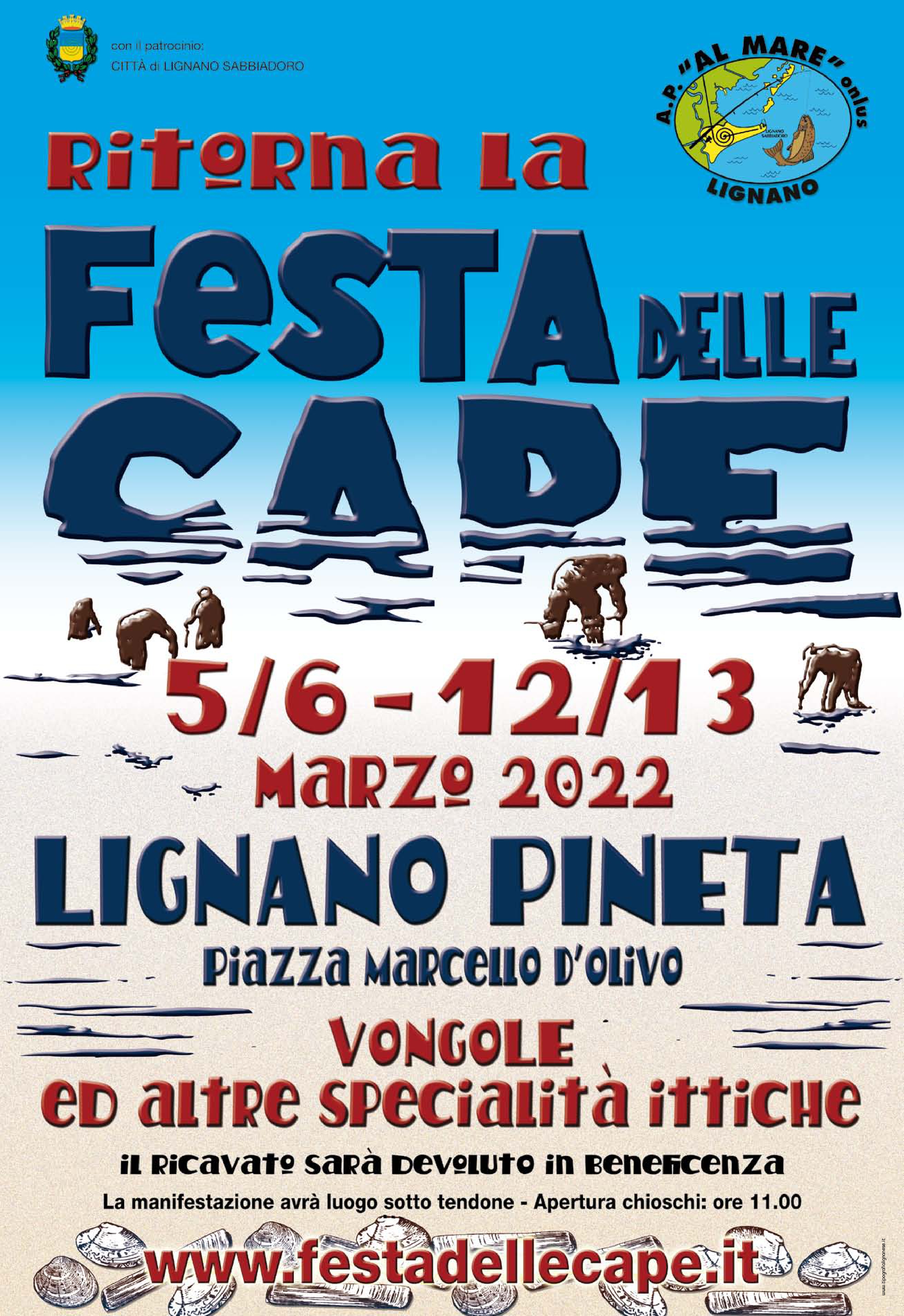 La Festa delle Cape 2022 si svolgerà in Piazza Marcello d’Olivo a Lignano Pineta, nei pranzi e cene di sabato e domenica 5-6 e 12-13 Marzo 2022.