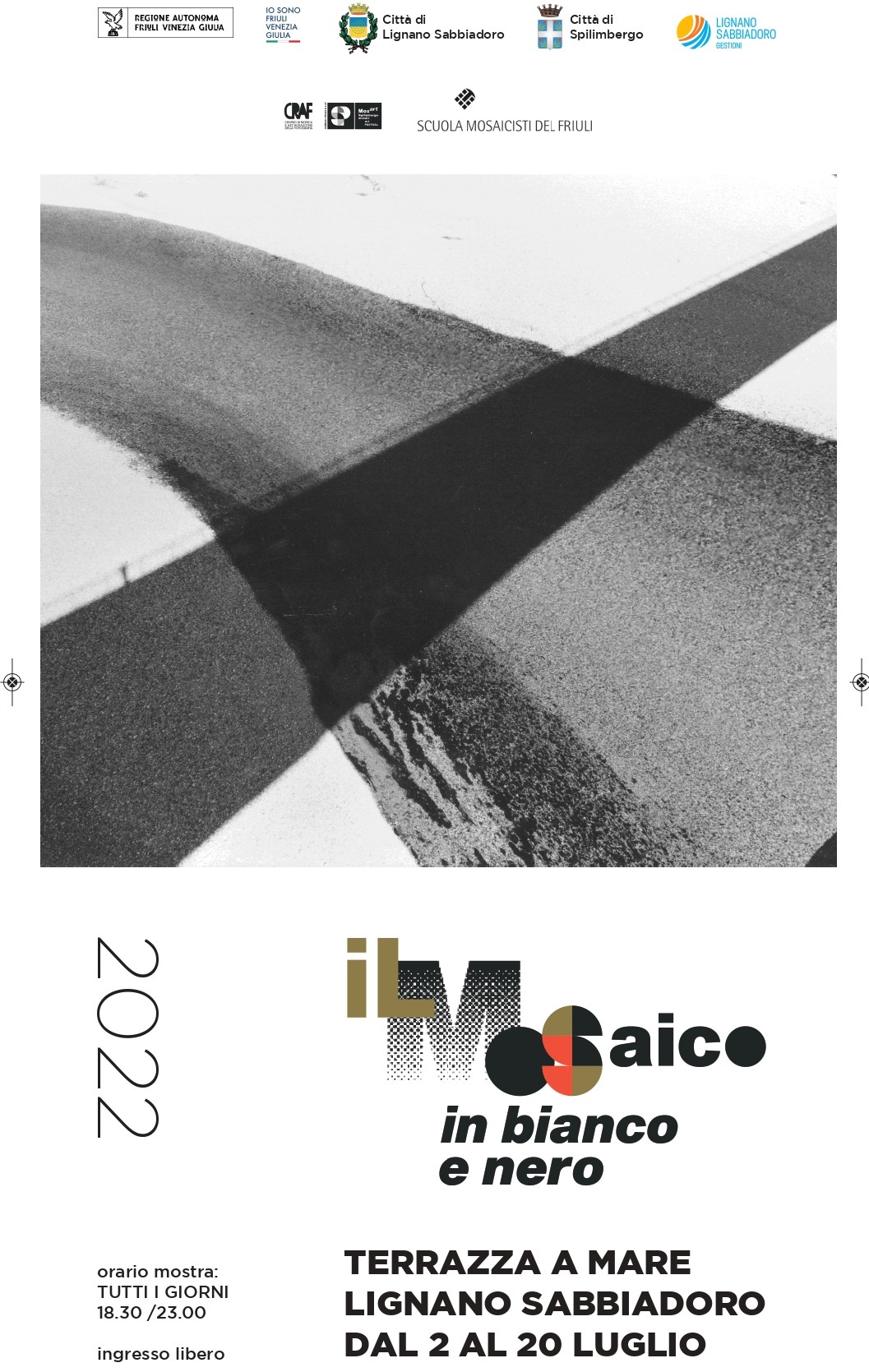La mostra "Il Mosaico in bianco e nero" è un percorso di promozione dell’artigianato e dell’arte musiva itinerante e sarà visitabile presso la Terrazza a Mare di Lignano Sabbiadoro dal 2 al 20 luglio 2022.