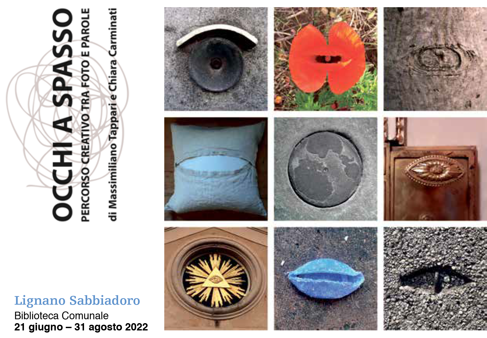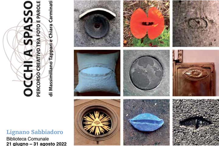 Dal 21 giugno al 31 agosto 2022 da lunedì a venerdì dalle 14:30 alle 22:30 e il sabato dalle 9:30 alle 19:00 si terrà “Occhi a spasso”, un percorso creativo opera di Massimiliano Tappari, fotografo e scrittore, e Chiara Carminati, scrittrice e poetessa.