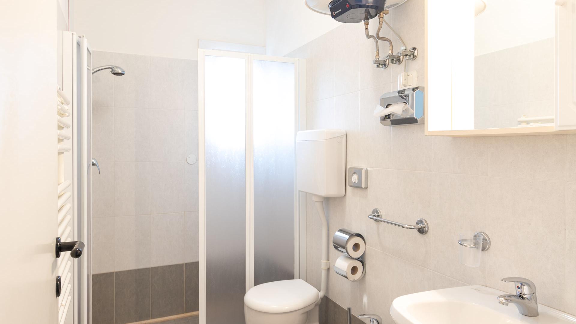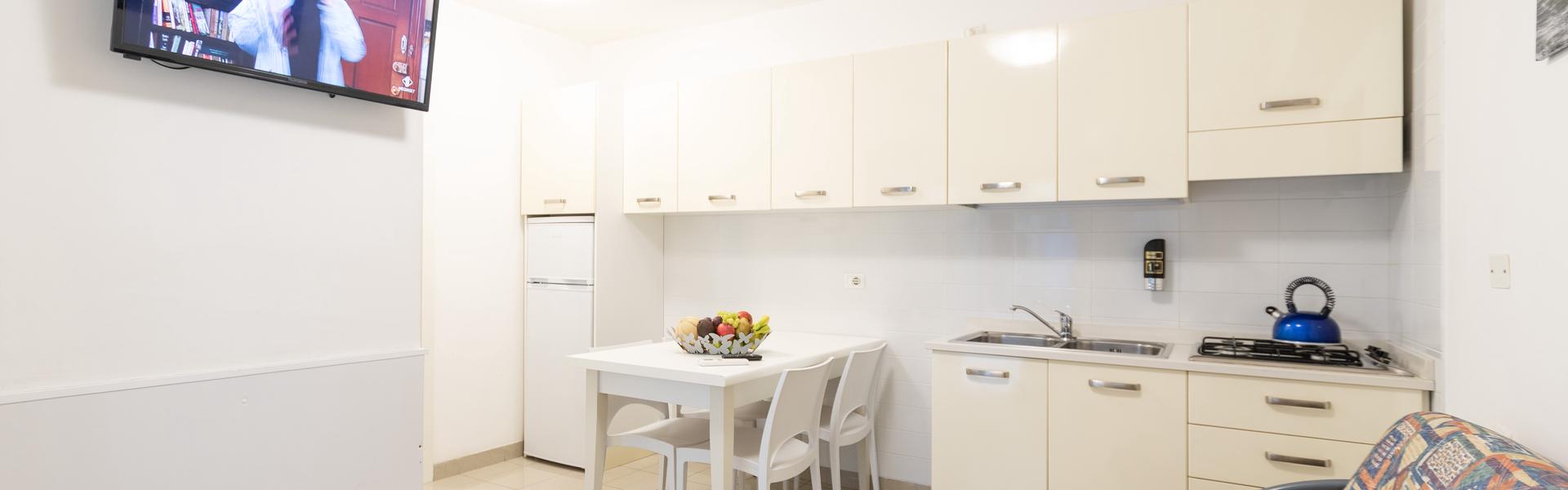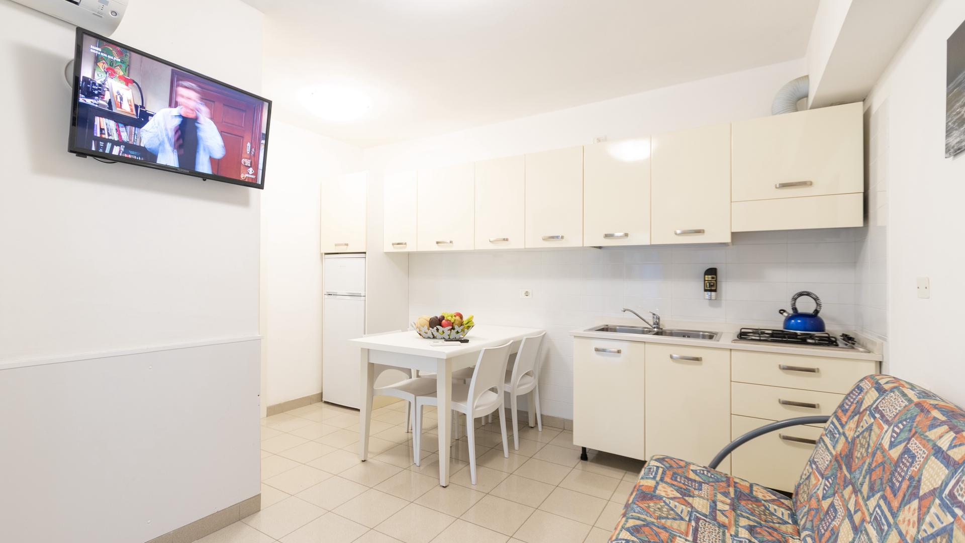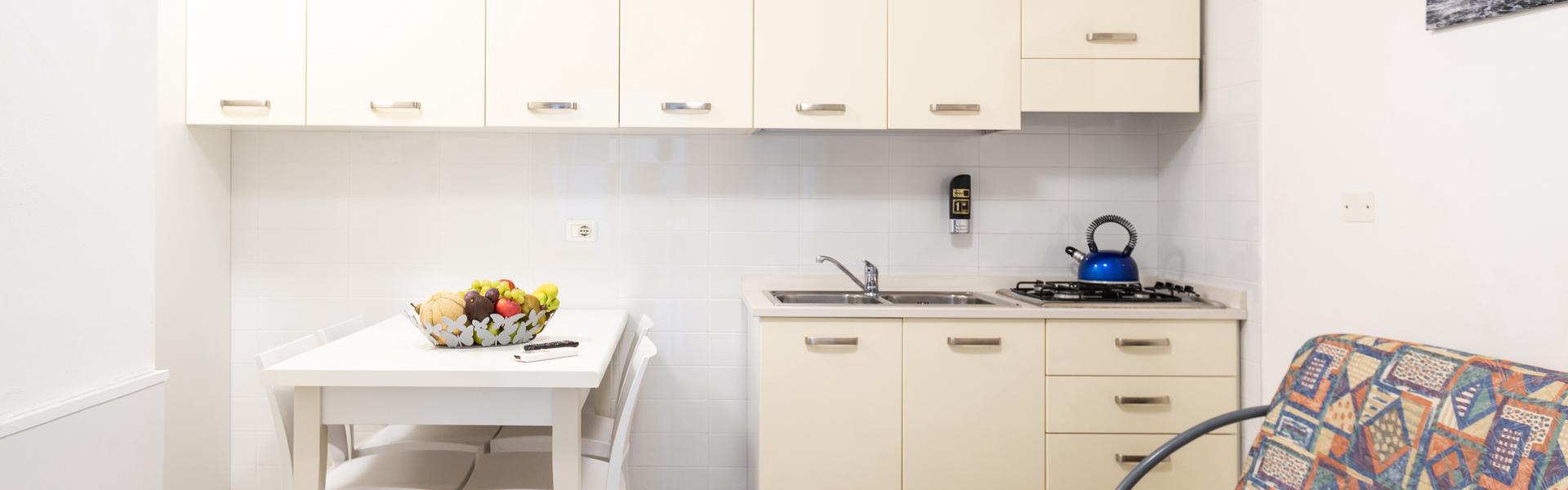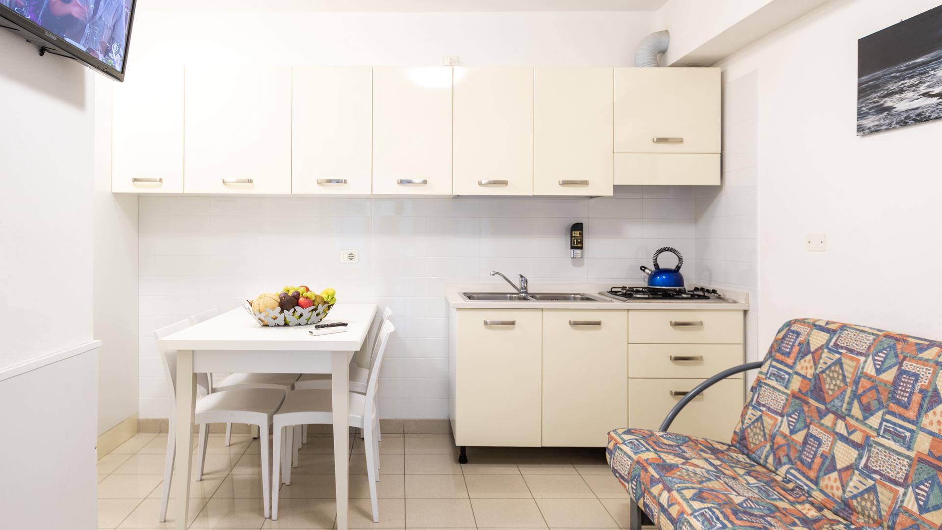 The two-room apartment for 3/4 people in the new villa Lucchese is located on the ground floor with a private entrance. The apartment has a living room with kitchenette and sofa bed, windowed bathroom with shower, bedroom with double bed and single bed. Villa Lucchese is a newly built residence inspired by the famous Dutch painter Mondrian, all apartments are equipped with air conditioning, satellite TV, new and modern furniture, security door, parking, video intercom, wi-fi, on the top floor is located a large solarium equipped with sun loungers and deck chairs.