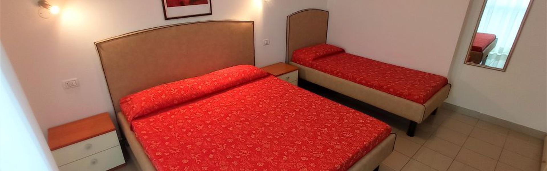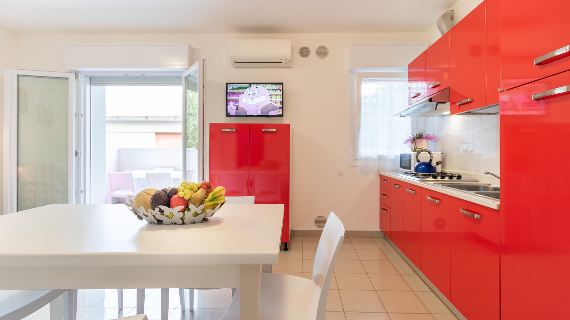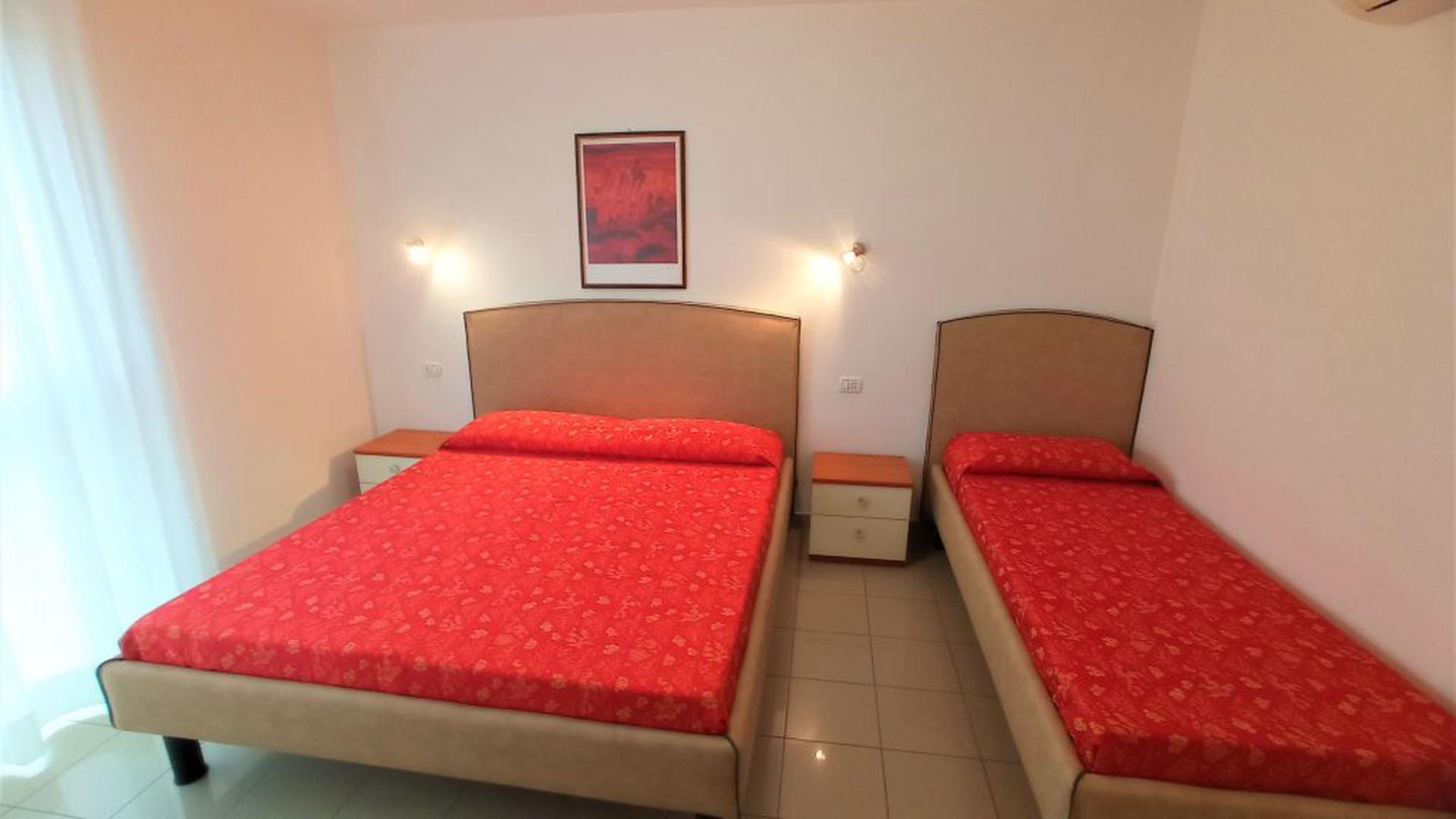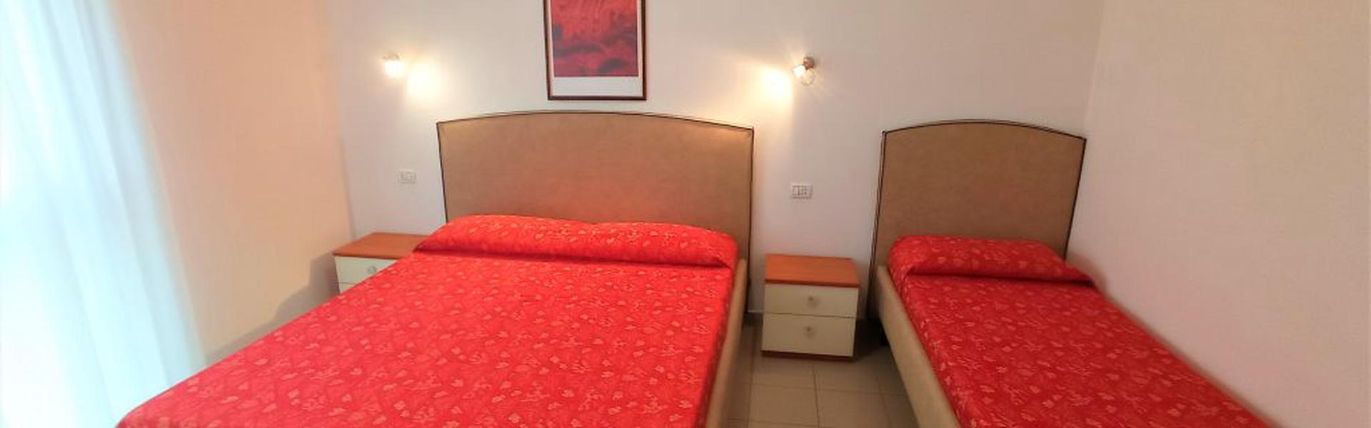 Two-room apartments for 5 people in the new Villa Lucchese consist of one room with double bed and single bed, living room with kitchenette and sofa bed, bathroom with shower, large terrace with table and chairs for the exclusive use. Villa Lucchese is a newly built residence inspired by the famous Dutch painter Mondrian, all apartments are equipped with air conditioning, satellite TV, new modern furniture, security door, parking, wi-fi, the top floor is a large terrace with sun loungers and deck chairs.