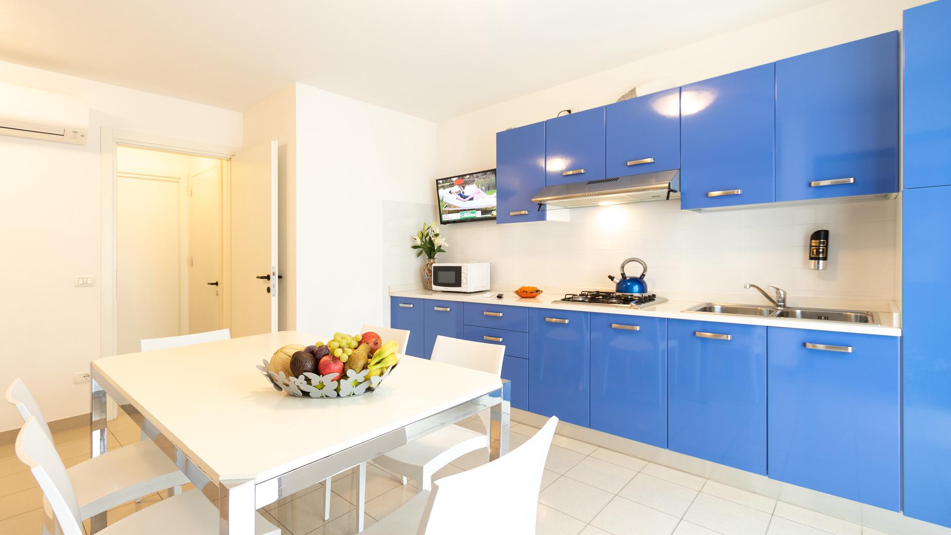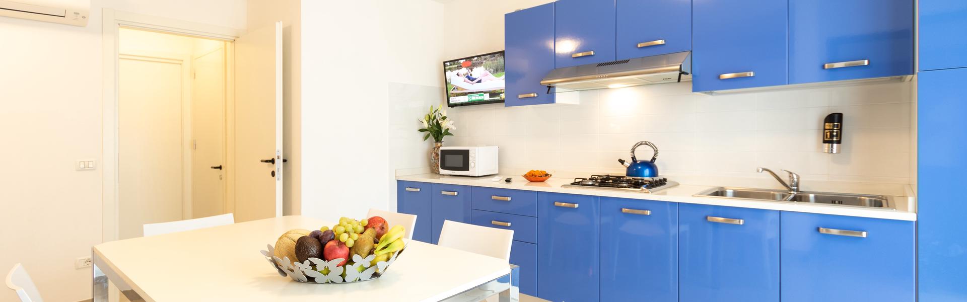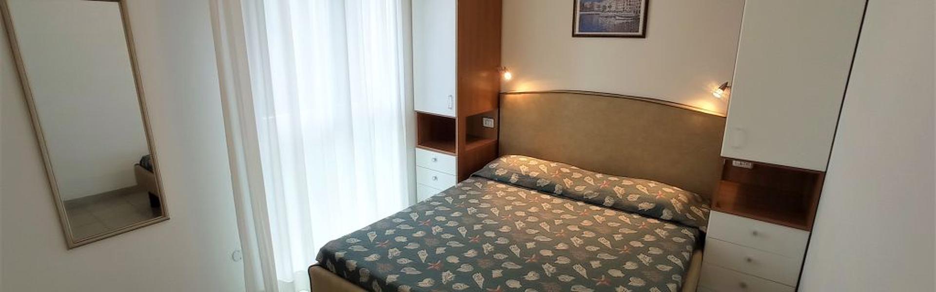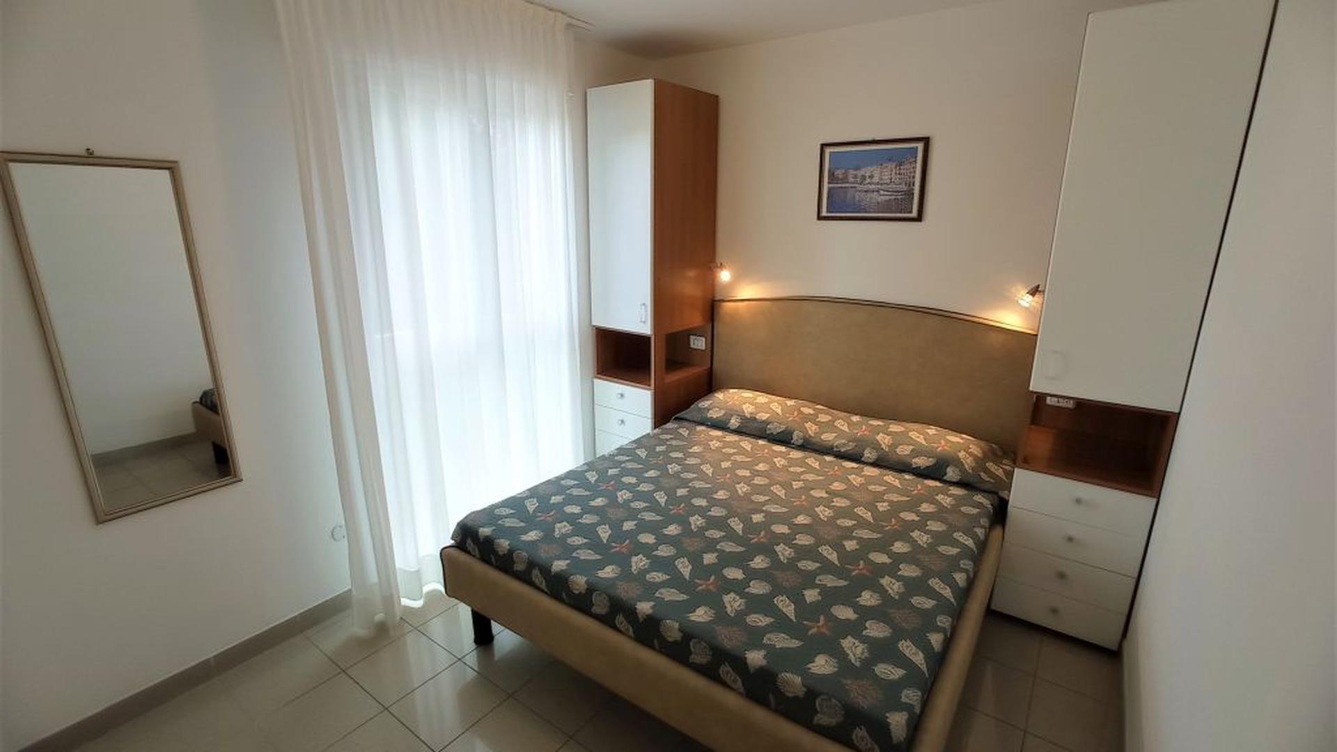 The three-room apartments for 7 people in the new Villa Lucchese consist of a large living room with sofa bed and kitchenette, a double bedroom, second bedroom with double bed elected single, bathroom with shower, large terrace equipped with tables and chairs. Villa Lucchese is a newly built residence, inspired by the famous Dutch painter Mondrian, all apartments are equipped with separate air-conditioning in every room, satellite TV, new modern furniture, security door, parking, wi-fii, intercom, at last floor there is a large terrace with sunbeds and deck chairs.