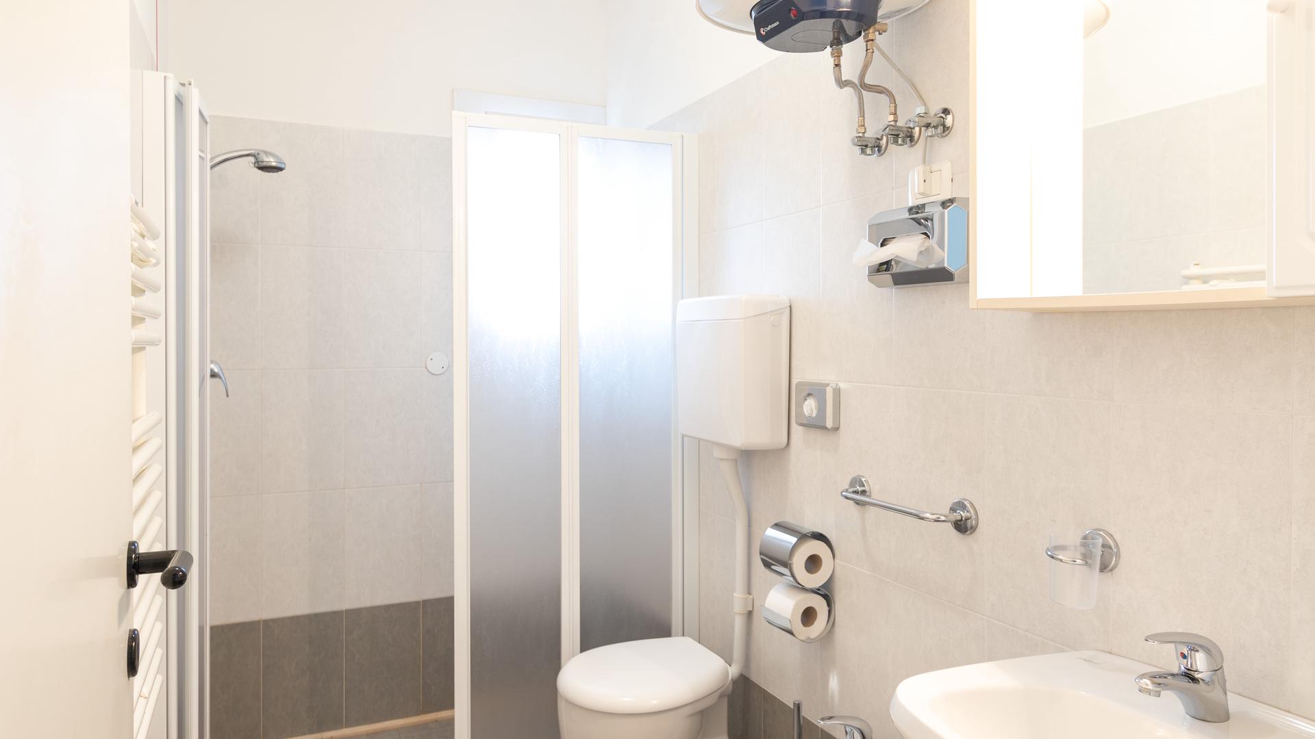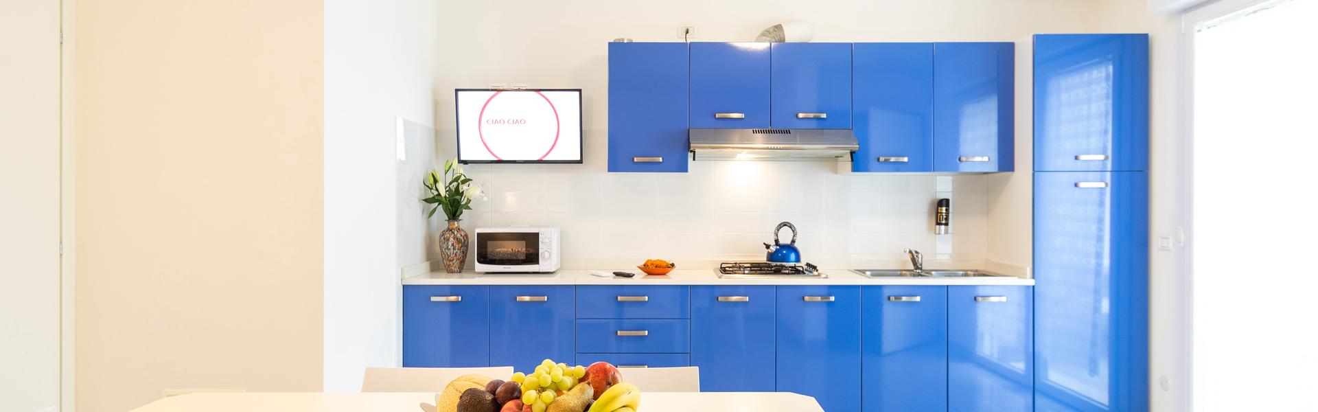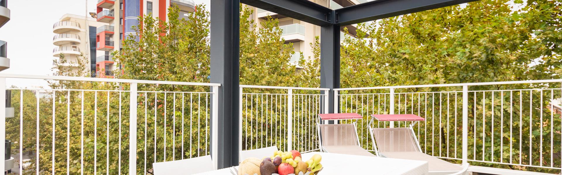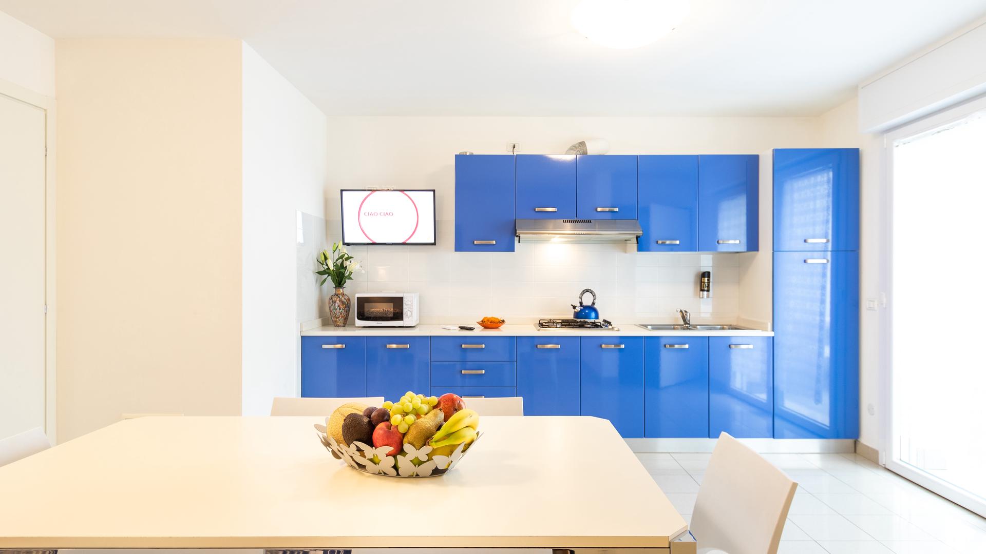 The three-room apartments for 7 people in the new Villa Lucchese consist of a large living room with sofa bed and kitchenette, a double bedroom, second bedroom with double bed elected single, bathroom with shower, large terrace equipped with tables and chairs. Villa Lucchese is a newly built residence, inspired by the famous Dutch painter Mondrian, all apartments are equipped with separate air-conditioning in every room, satellite TV, new modern furniture, security door, parking, wi-fii, intercom, at last floor there is a large terrace with sunbeds and deck chairs.