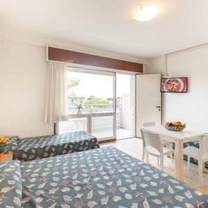 Yachting Residence is located in Lignano Sabbiadoro, 350 meters from the beach, 250 meters from the center and has a beautiful breathtaking view of the Lagoon. This residence consists of 12 apartments for two persons, 6 apartments for 3 people, 17 apartments for 4 people. All apartments have entrance hall with kitchen, bedroom, bathroom with shower, large private terrace, safe, satellite TV and parking. Our parking place is 300 meters from the apartment and is included in the price All apartments have air conditioning and wi-fi